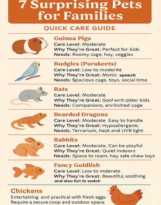 Choosing the right pets for family life means thinking beyond the usual suspects and considering companions that might once have seemed unlikely. Whether you live in a city apartment or a rural home, there’s a perfect pet that matches your family’s rhythm, energy, and needs. These unexpected animals — from intelligent rats to peaceful goldfish — bring joy, responsibility, and love into the home in ways that are refreshingly different.
