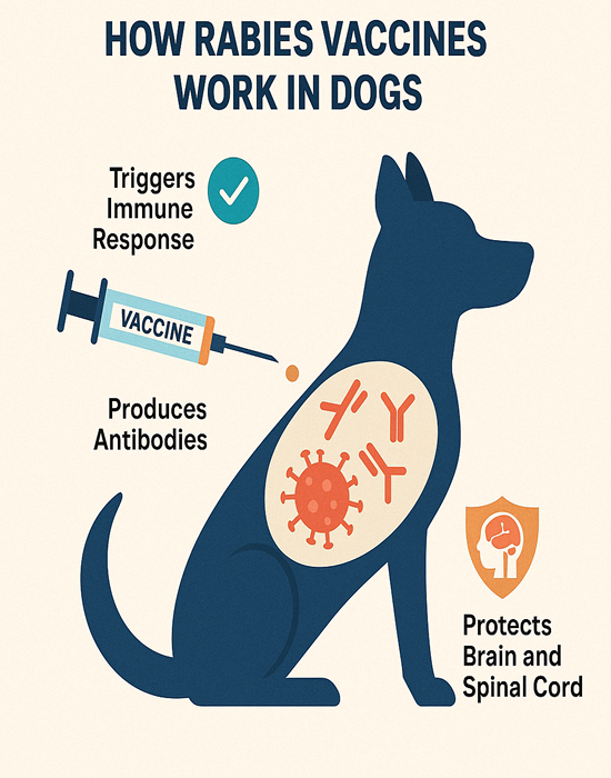Rabies vaccines work by exposing your dog’s immune system to a harmless version of the rabies virus, usually a killed or inactivated form. This exposure teaches the immune system to recognize and destroy the real virus if it’s ever encountered. After vaccination, it typically takes about 7 to 14 days for full immunity to build. This internal defense not only protects your dog from developing rabies but also helps prevent the disease from being passed on to humans or other animals.