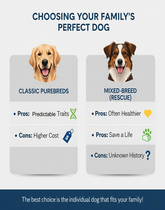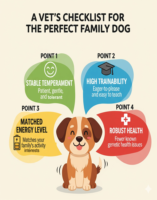 - Traits Over Breed. The most important factors in a good dog for family are its individual temperament, trainability, and energy level—not its pedigree. Always prioritize a dog that matches your family’s specific lifestyle.